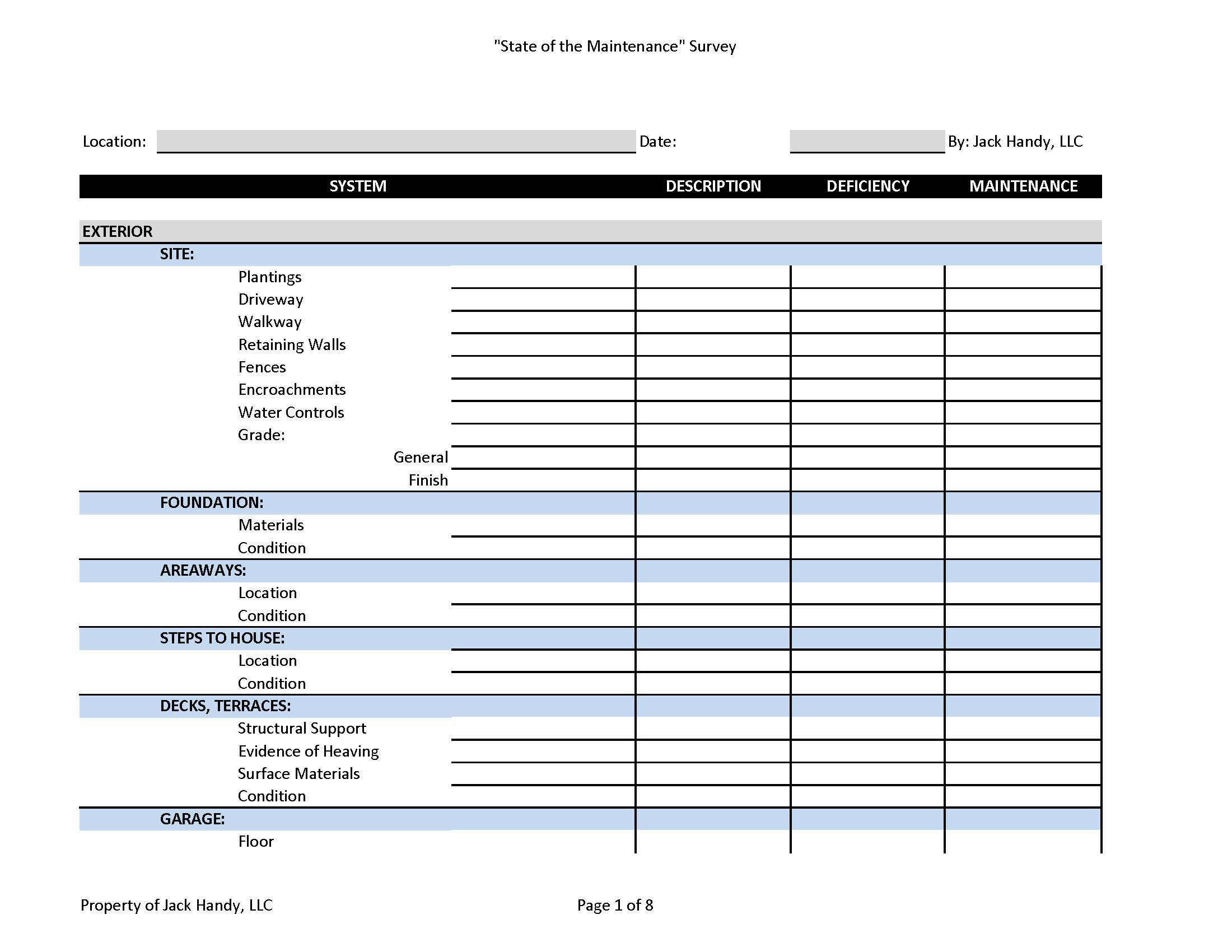 The “State of the Maintenance” Survey is an invaluable tool for the determination of where to allocate resources and how to prioritize remedial repairs and maintenance of your home.